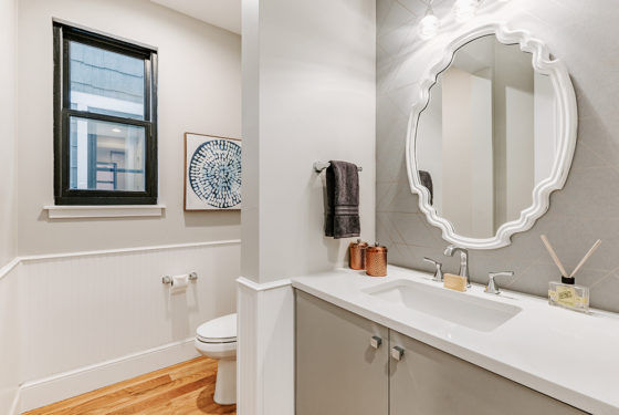 The custom design elements of these homes come together impeccably with accent walls, decorative tiles, designer light fixtures, and Anderson wood cased aluminum clad windows.