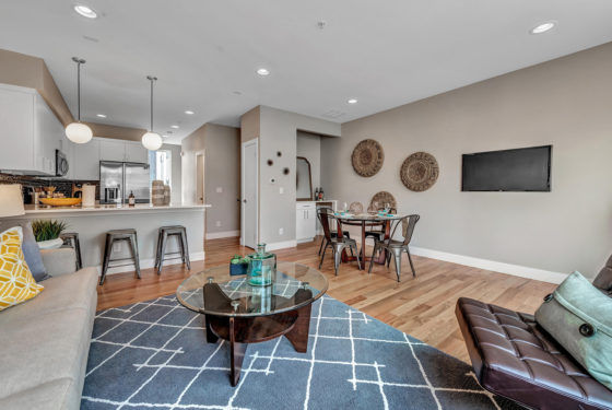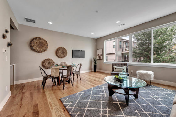 Ten 1,657 square foot chic and contemporary new construction 3 bedrooms, 3 bath row homes in the heart of Sloan’s Lake at 3245 W 17th Ave in Denver, CO 80204. Enter from the 2 car garage into a foyer with a full bedroom and bath.